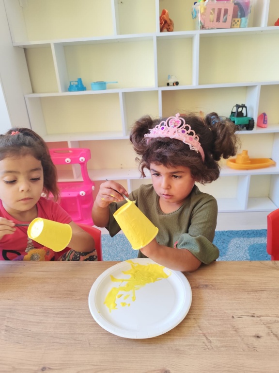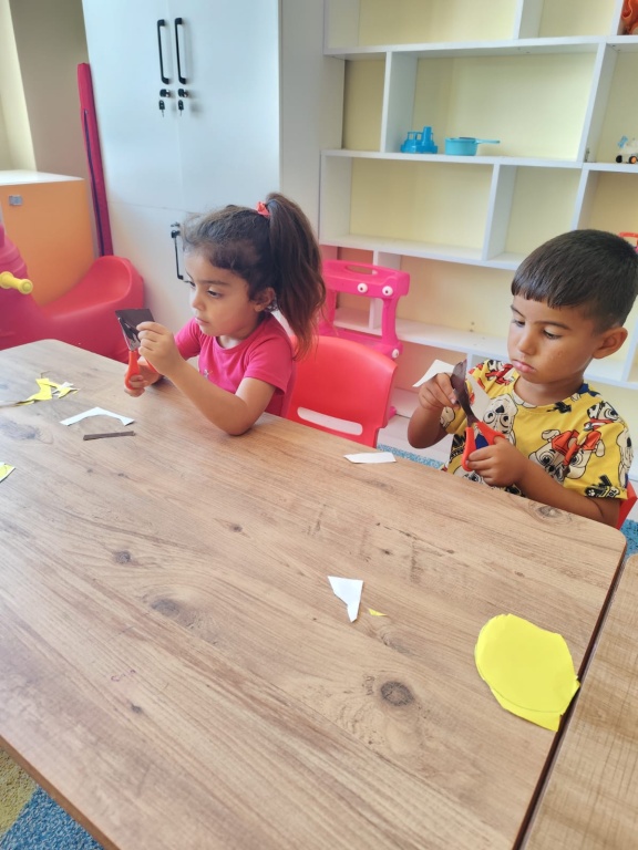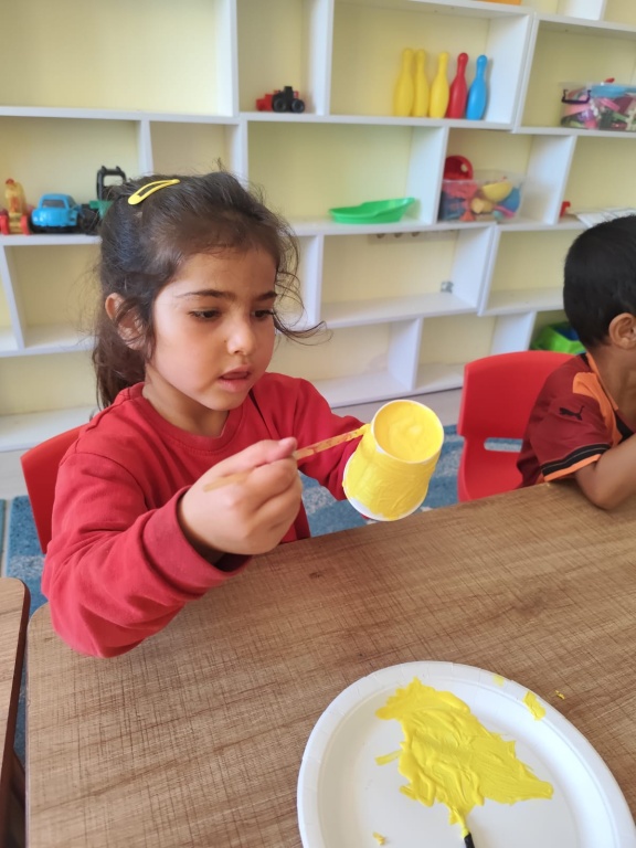 Ardından çocuklarla uzun ve kısa hayvanlar hakkında konuşulup uzun kavramı olarak çocuklara bardaktan zürafa yaptırıldı. Önce çocuklardan bardakları parmak boyasıyla oyar, bardaklar kururken öğretmen daha önceden hazırladığı el işi kağıdına çizdiği zürafa kafası ve ağzını çocuklara kestirir daha sonra çocuklar bunları yapıştırır ve artan kağıtları rasgele keser ve zürafaya benek diye kestikleri zürafa kafasına ve bardaklara yapıştırır ve her çocuğun elinde birer tane bardaktan zürafa oldu. Böylece uzun ve kısa kavramları öğretildi.